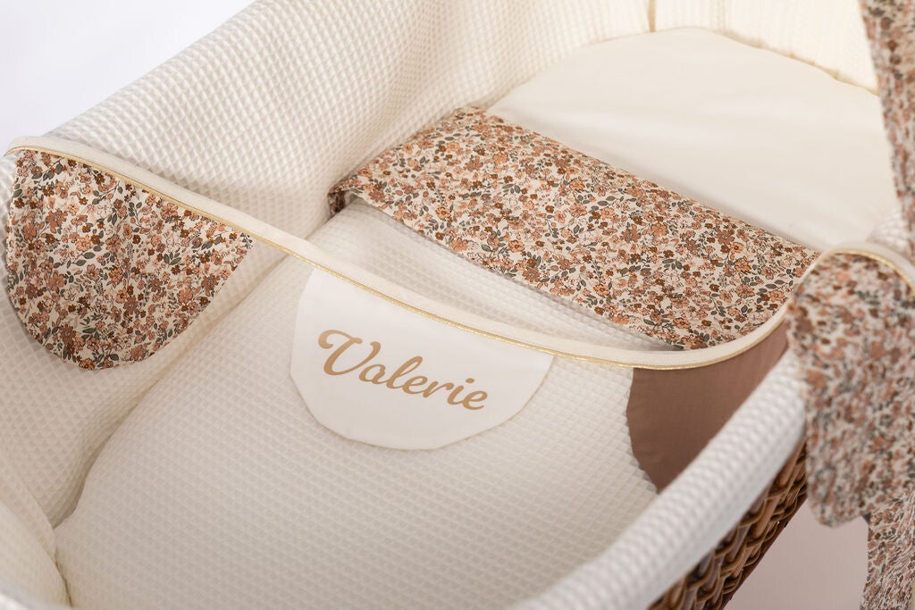 Elke vlaggenlijn is met liefde gemaakt en bestaat uit vijf half ronde vlaggetjes. Samengesteld uit verschillende stofjes die perfect bij elkaar passen en afgewerkt met paspelband. Dit zorgt voor een speels, maar rustig geheel dat prachtig staat boven een wiegje, commode of plankje.